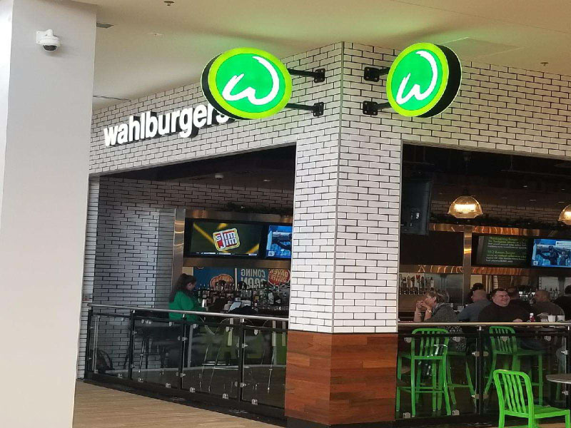 We were honored when Wahlburgers, the popular Wahlberg family restaurant, came to Spark Signs & Graphics to outfit their new restaurant at the Block in Ross Township, the first franchise location in the Pittsburgh region. We constructed five signs and an awning – exterior channel letters, interior channel letters, a raceway channel letter mounted to the awning, and two blade signs that bear the Wahlburgers unique “W” logo.